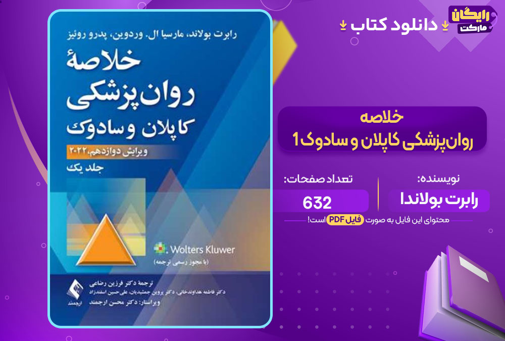 📕 وب سایت رایگان مارکت کتاب خلاصه روانپزشکی کاپلان و سادوک1 رابرت بولاند این کتاب خلاصه روانپزشکی کاپلان و سادوک جلد اول، مرجعی جامع و کاربردی در زمینه اصول و مبانی روانپزشکی است که به صورت خلاصه و دقیق نوشته شده است. مطالب کتاب شامل تشخیص، درمان و بررسی انواع اختلالات روانی است و برای دانشجویان و پزشکان تازهکار بسیار مناسب است. ساختار منظم و زبان ساده آن، یادگیری را تسهیل میکند .برای دانلود و بهرهبرداری از این منبع ارزشمند، با سایت رایگان مارکت همراه باشید.