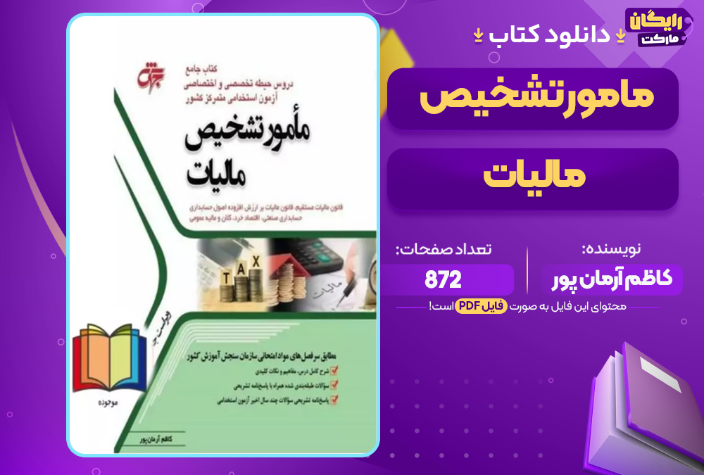 کتاب مامور تشخیص مالیات اثر کاظم آرمان پور (PDF) 872 صفحه پی دی اف در سایت رایگان مارکت برای شما مخاطبان به اشتراک گذاشته شده است. این کتاب، یک اثر جامع و دقیق در زمینه‌ی مالیات و اصول تشخیص مالیاتی است که به تفصیل به بررسی مفاهیم اساسی در این حوزه می‌پردازد.